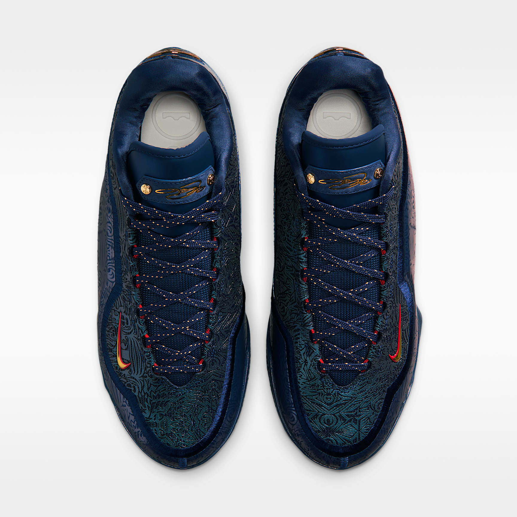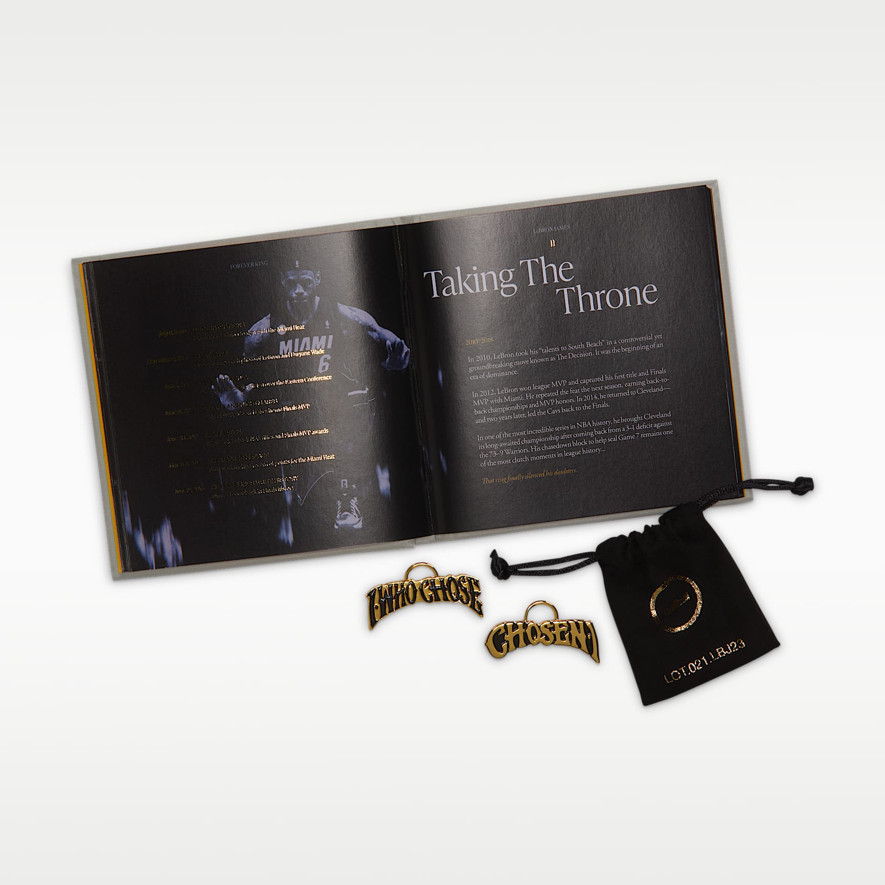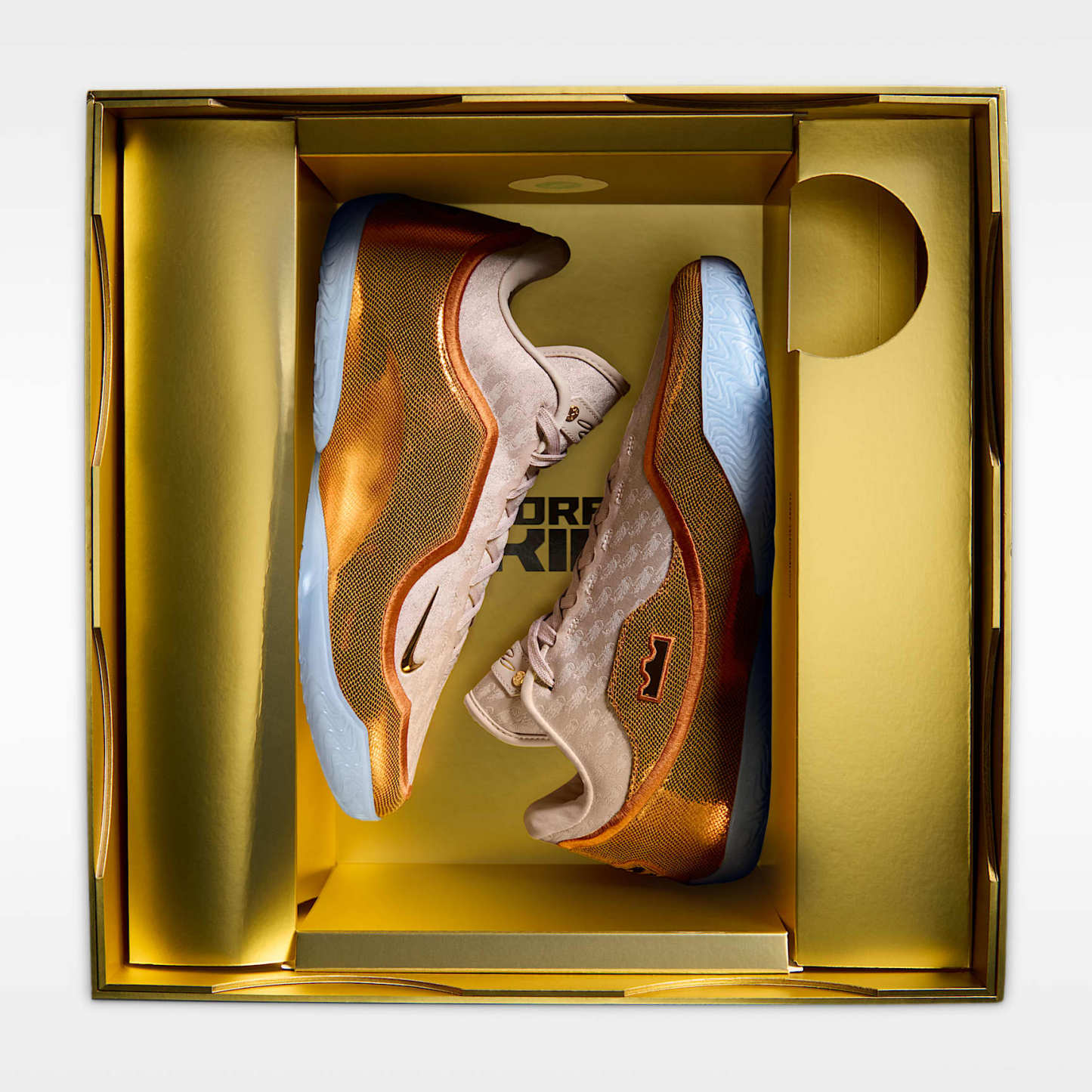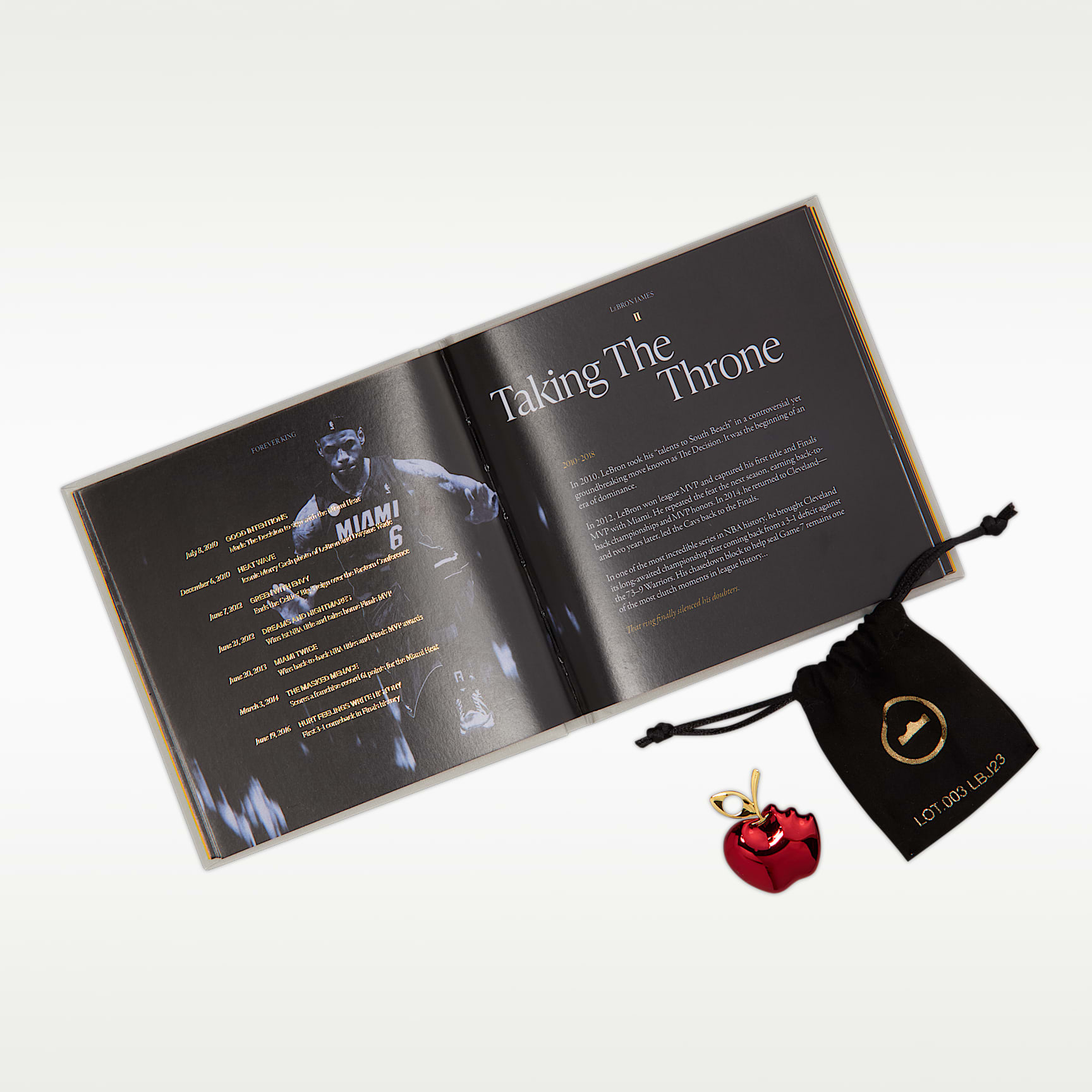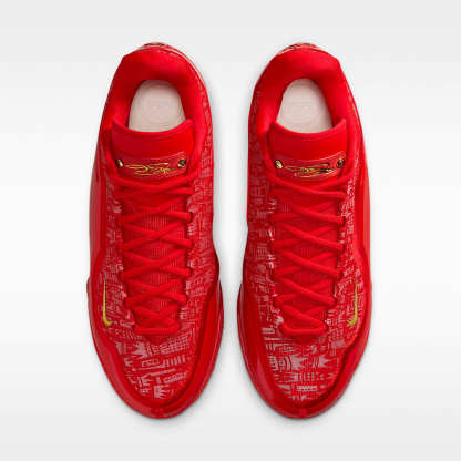 In a superstar-filled draft class it was LeBron who shook the commissioner’s hand first, kickstarting a 23-year run of sovereignty. This rich red design is regal from heel to toe and takes its cues from the wine-colored cap Bron donned as he walked across the stage. The upper sports a graffiti-like graphic of New York’s unmistakable skyline with crowns throughout. And, naturally, there is an apple decal on the heel with a crown-shaped bite taken out of it.